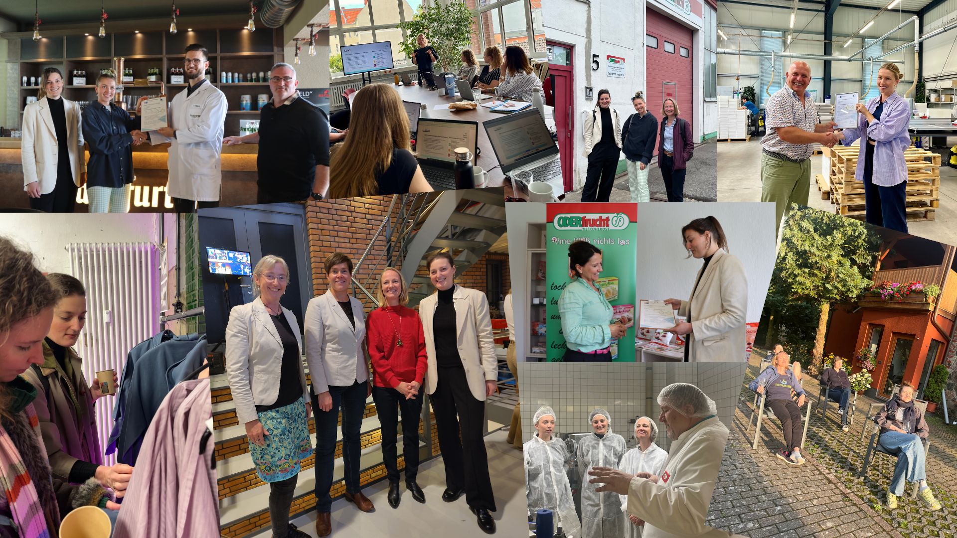 Kollage (oben): CO2-Zertifikatsübergaben bei M+R Filtermedien, Oderfrucht, Frankfurter Brauhaus und Wohnungsbau Prenzlau; Womens Business Club mit Rostocks Oberbürgermeisterin Eva-Maria Kröger und Nicole Wrage-Mönnig von der Universität Rostock; Teamtage in Jansfelde; UDK Modekollektion in Kooperation mit Admiral; Workshop mit Arbeit und Leben Berlin-Brandenburg und dem Zukunftszentrum Brandenburg; und viele weitere Erinnerungen aus 2025!